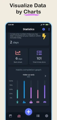 Habit360 vous accompagne pour créer de bonnes habitudes et briser les mauvaises. Suivez votre humeur et vos progrès avec des statistiques claires pour atteindre vos objectifs à long terme. Améliorez votre bien-être mental et organisez votre vie plus efficacement.