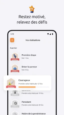 Pour maintenir votre motivation et célébrer chaque victoire, Habitive intègre des mécanismes de suivi avancés et une dimension ludique. Plongez dans des statistiques détaillées pour visualiser l'impact de vos efforts et parcourez un historique complet de vos performances, transformant votre persévérance en données tangibles. La gratification est à portée de main : débloquez des réalisations uniques à mesure que vous progressez, transformant le chemin vers la maîtrise de soi en un défi stimulant et gratifiant. Ce système, conjugué à une planification hebdomadaire claire, vous offre une vision constante de vos avancées. Et la meilleure nouvelle ? Tout ce potentiel est accessible gratuitement avec Habitive.